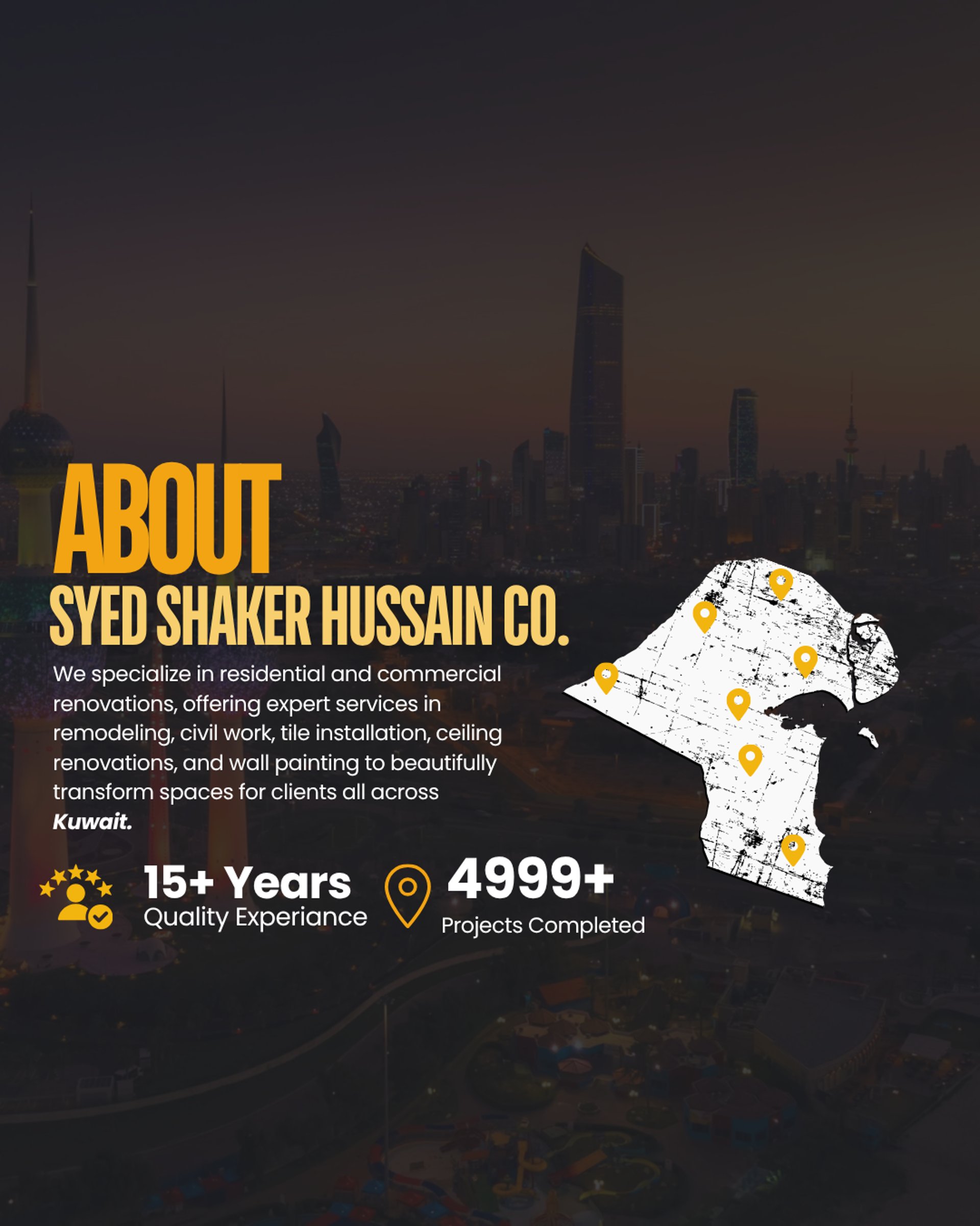 Syed Shaker Hussain Co transformed our home beautifully. The tile work was exceptional and the team was professional throughout the process. Highly recommend their services!